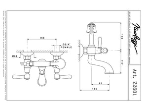 Nicolazzi 2601W Brenta Wall Mounted Bath Set With Hand Shower with White Lever Handles