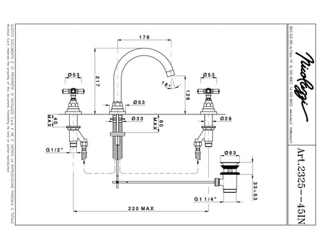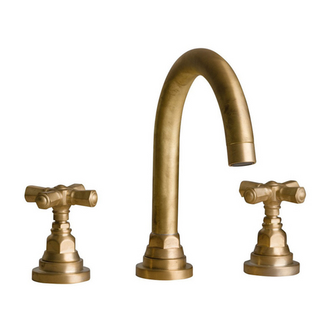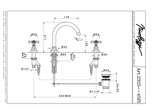 Wash basin mixer with automatic pop-up waste, goose neck spout