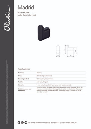 - Madrid accessories are constructed from brass, stainless steel and cast zinc components.