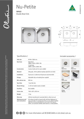 Oliveri NP663 Nu-Petite Double Bowl Topmount Sink