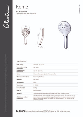 - Warranty: 5 years replacement parts and finish; 1 year labour