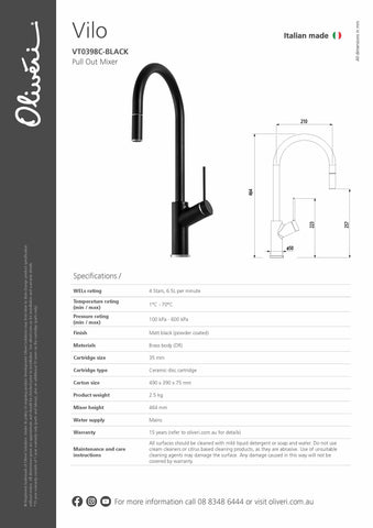 Matte Black - VT0398C-BLACK - SPECIFICATIONS SHEET