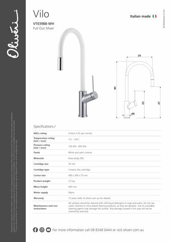 White - VT0398B-WH - SPECIFICATIONS SHEET