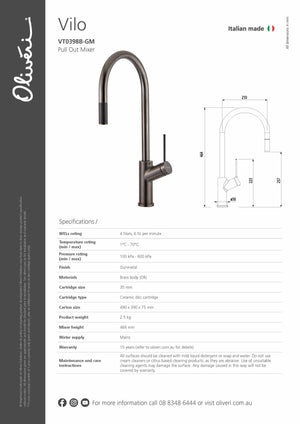 Gunmetal - VT0398B-GM - SPECIFICATIONS SHEET