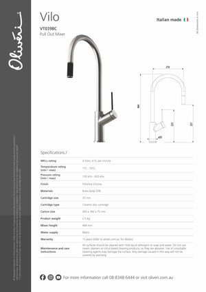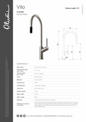 4 Star Water Rating - Water consumption: 6.5 litres per min - In accordance with AS/NZS 6400 - Licence number: 1416 (Oliveri Pty Ltd)
