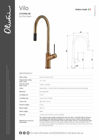 Natural Brass - VT0398B-NB - SPECIFICATIONS SHEET