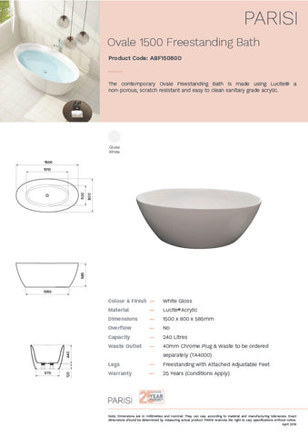The contemporary Ovale Freestanding Bath offers design utilising Lucite®, a non-porous and scratch resistant material. Lucite® is also an easy to clean sanitary grade acrylic.