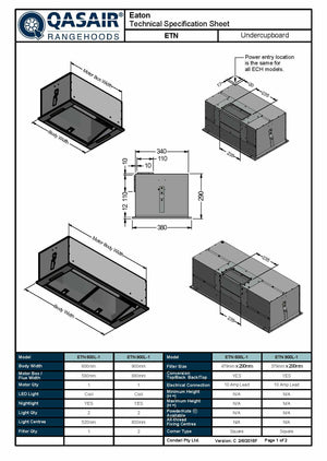 - ETN 600L-1 B - Back Ducted (600mm Single Motor Undercupboard Rangehood)