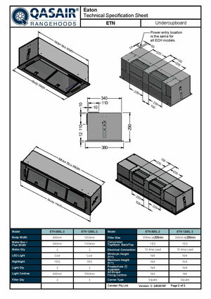 - ETN 1200L-2 B - Back Ducted (1200mm Twin Motor Undercupboard Rangehood)