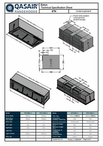 - ETN 1200L-2 T - Top Ducted (1200mm Twin Motor Undercupboard Rangehood)