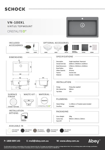 Schock invented the granite sink in Germany over 30 years ago. With stunning crisp lines and a silky smooth finish, the quality German made sinkware has been created using state-of-the-art composite NanograniteĀ® materials. It offers exceptional strength and durability, are stain resistant and inert with antibacterial properties.
