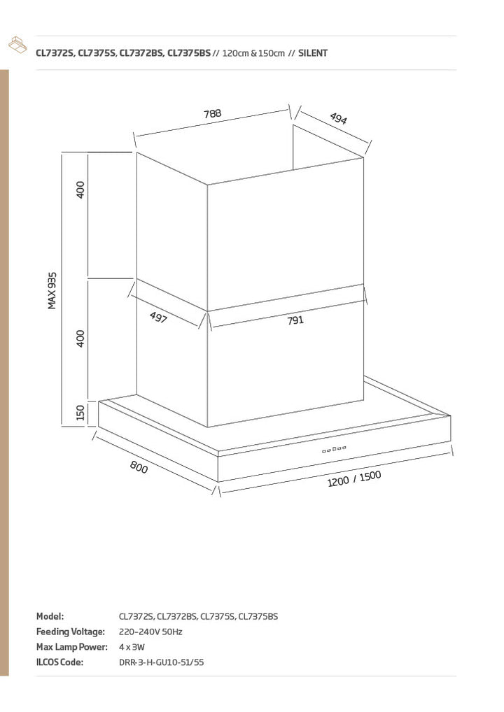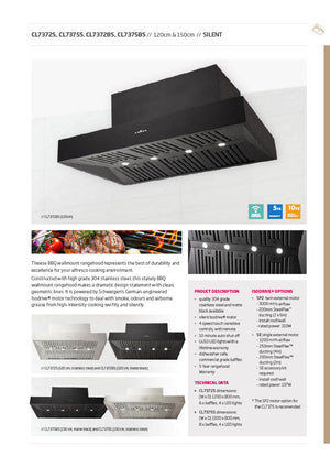 Constructed with high grade 304 stainless steel hand-polished to a hardwearing lustre, the 1500mm wide CL7375S BBQ wallmount rangehood promises a commanding presence in any alfresco cooking environment.