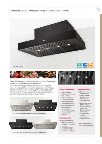 Schweigen CL7375S 1500mm Silent BBQ Wallmount Alfresco Rangehood