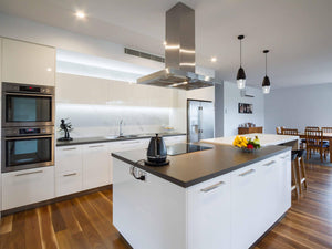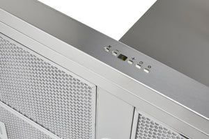 The angular look of this rangehood has become extremely popular in modern kitchens, boasting features such as soft-touch eye level controls, stainless steel finish and a 15 minute delay timer with automatic shut-off.