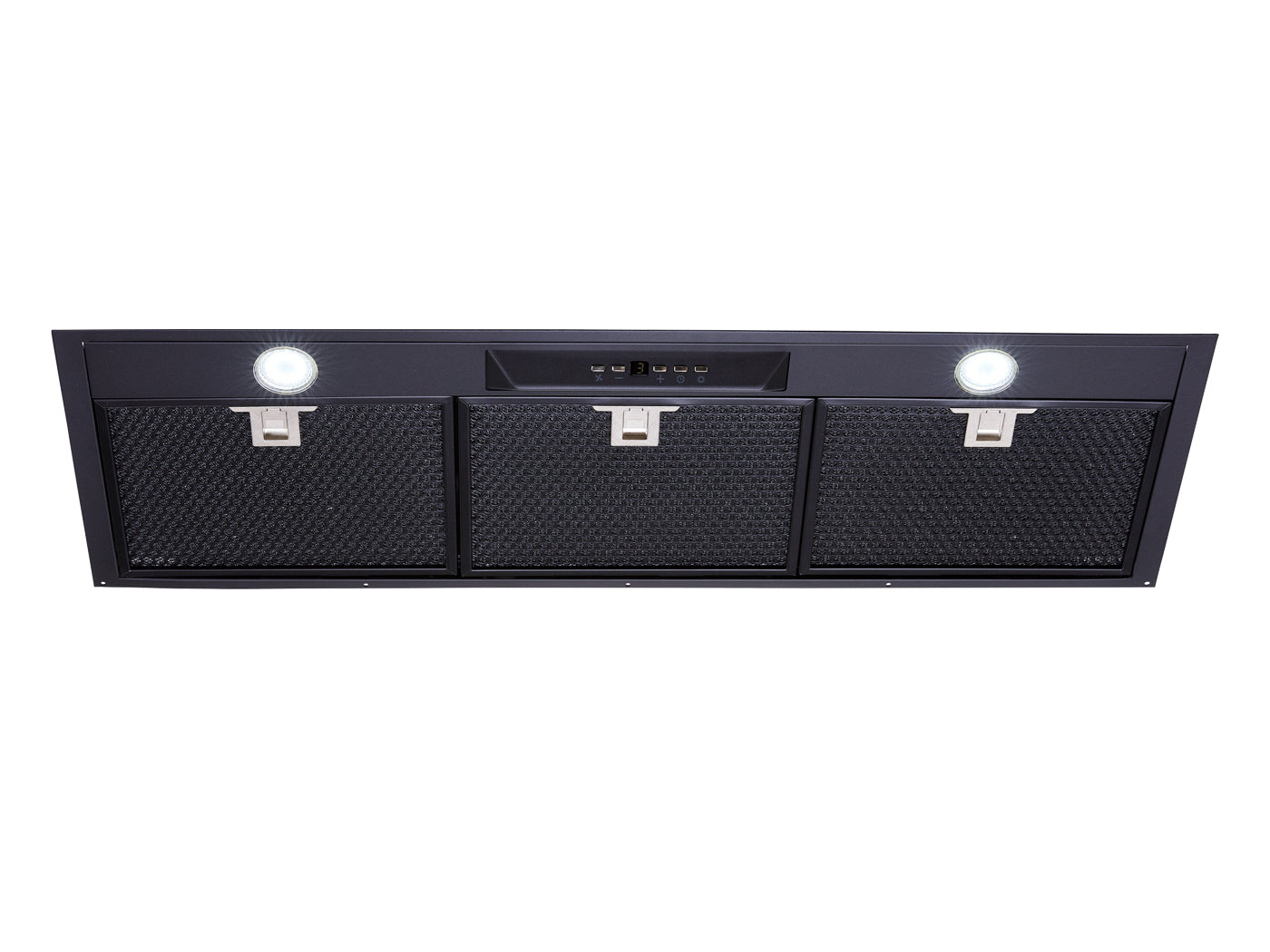 Soft-touch controls operate the 5 speed settings and LED lighting, while dishwasher-safe mesh filters offer easy maintenance. (Baffles are also available as an option).
