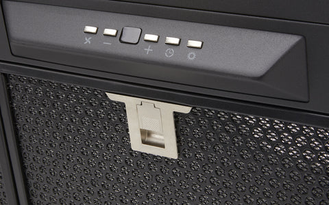 Soft-touch controls operate the 5 speed settings and LED lighting, while dishwasher-safe mesh filters offer easy maintenance. (Baffles are also available as an option.)