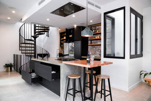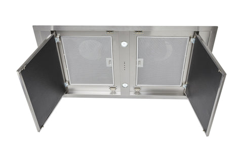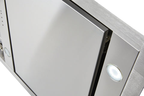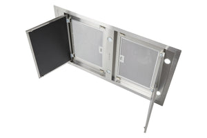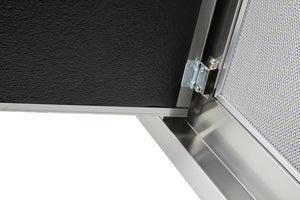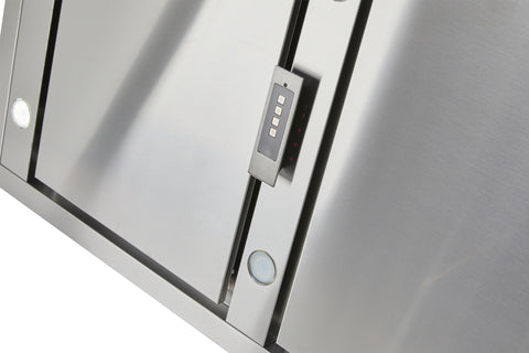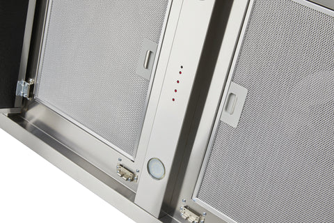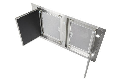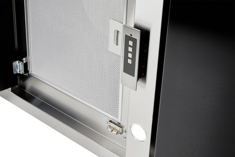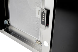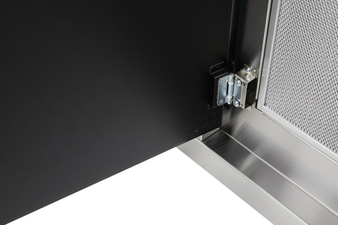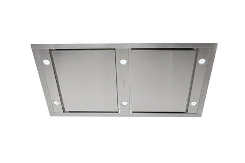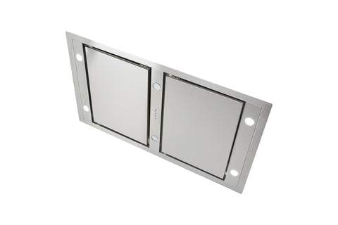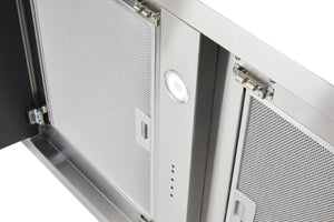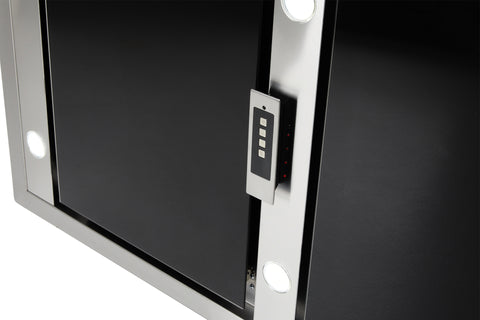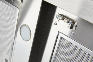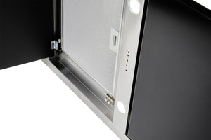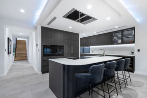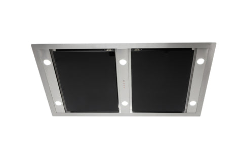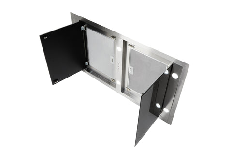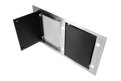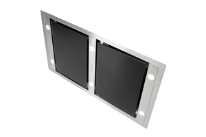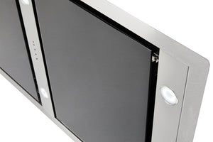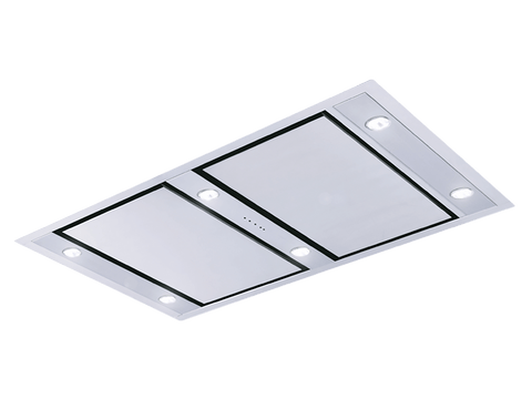 This silent ceiling cassette is a combination of innovative silent technology and sleek, modern kitchen styling. This stylish stainless steel cassette rangehood can be installed into a bulkhead or the ceiling. The ceiling cassette is finished in stainless steel or stainless steel with black glass doors, making it both aesthetically pleasing and practical in its performance. Featuring 6 LED down-lights for bright illumination of your cooking area, this stylish extraction hood is a central feature for open-plan dining & entertainment areas.