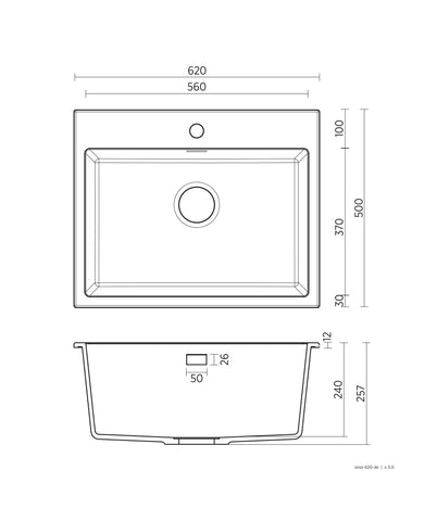 - Dimensions: 620mm (L) x 500mm (W) x 257mm (H)