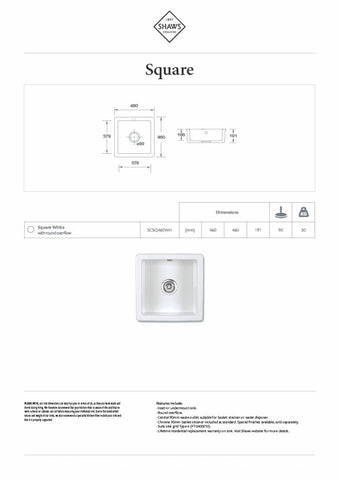 The Shaws Square inset undermount sink is perfectly suited for vegetable preparation and general use on island or peninsular benches. The classic styling is suited to both traditional and modern kitchens.