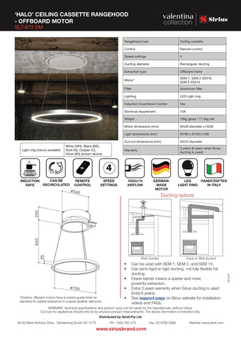 Sirius SLT973 EM Valentina Collection ‘The Halo’ 750∅ Offboard Ceiling Cassette Rangehood
