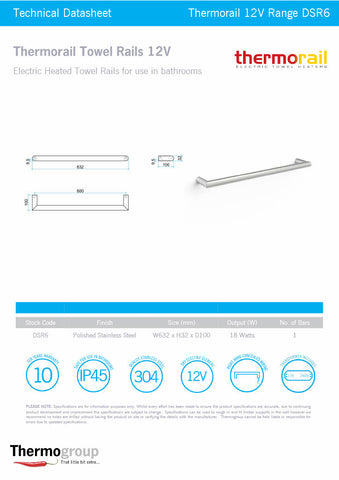 The Thermorail single bar heated towel rails are all 12 volt which means they are safe to be installed anywhere in the bathroom, even close to water. The single rails are designed to be installed in a series of rails limited only by your imagination. We do however recommend a minimum of 3 single rails are used in a set to provide enough heated surface area in contact with your towels to help them to dry.