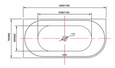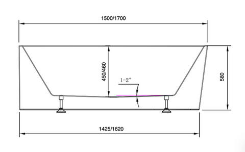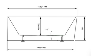Dimensions: 1500 x 750 x 580mm- Overflow on Entrance Side of Bath