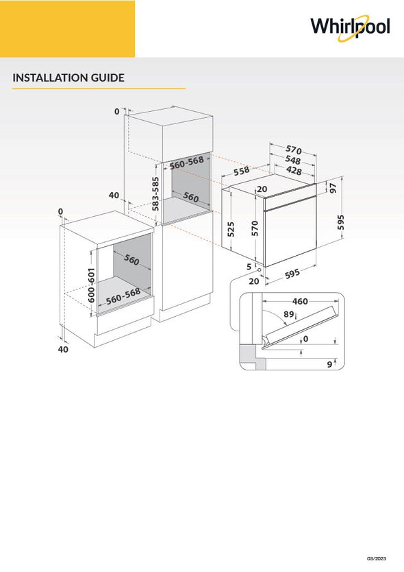 - CUT OUT DIMENSION: W 560mm x H 583mm x D 560mm