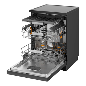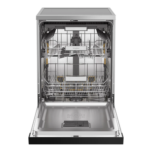 Introducing the 60CM Free-Standing Dishwasher with Power Clean Pro – the ultimate solution for spotless dishes and effortless convenience. With its 15 place setting capacity, this dishwasher is designed to accommodate your entire kitchen load, making after-dinner cleanups a breeze. Equipped with state-of-the-art 6th sense technology, this dishwasher takes the guesswork out of cleaning. Its powerful water jets, strategically positioned at the rear, deliver unparalleled cleaning results even on the toughest dirt and grime. The machine's smart sensors detect the level of grime on your dishes and adjust the cycle time and water pressure accordingly, ensuring optimal performance while saving water, energy, and time. Our innovative modular 3rd rack provides a dedicated space for cutlery and utensils. The sliding modules make loading and unloading a breeze, while also allowing you to effortlessly load taller items on the upper rack. Experience a new level of cleanliness with our Sanitization option. This advanced feature eliminates a staggering 99.999% of bacteria, ensuring your dishes are not only visually spotless but also impeccably hygienic.