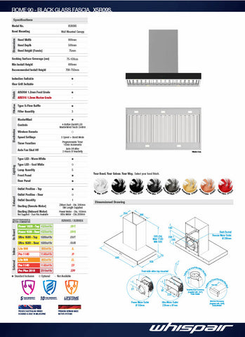 Dimensions: 75mm (Black Fasica) Hood Height (Fascia) x 900mmW x 500mmD