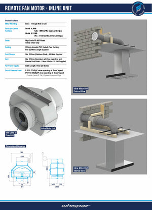 - Outlet: 200mm Diameter - Remote Motor Kit Includes 200mm Ducting