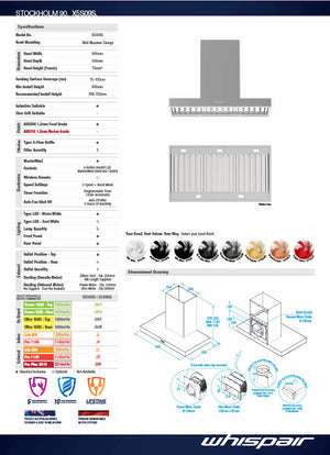 Dimensions: 75mm Hood Height (Fascia) x 900mmW x 500mmD