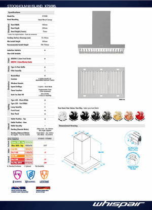 Dimensions: 75mm Hood Height (Fascia) x 900mmW x 600mmD