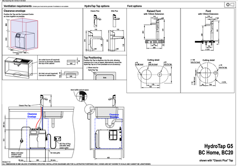 - HydroTap is air-cooled so discrete cabinetry cut-outs are required for ventilation.